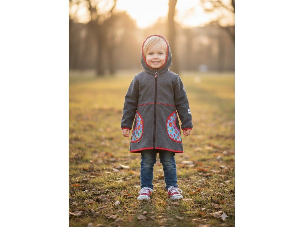 Kabátky jsou slušivého áčkového střihu, ideální pro malé i větší slečny, které se chtějí parádit a přitom neomezuje v pohybu při hraní :-)