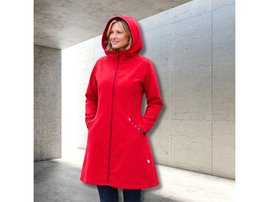 Softshellový kabát červený s prodlouženým zadním dílem