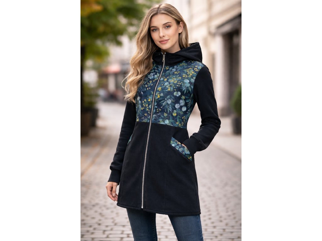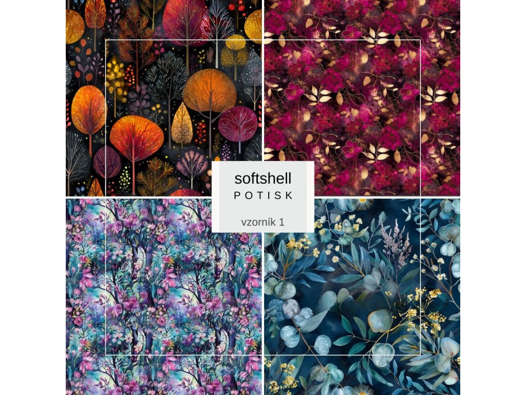 Jedinečná barevná kombinace černého softshellu a tištěného softshellu s krásným motivem eukalyptu podtrhuje originální autorský návrh, který nevzniká sériově, ale s důrazem na detail a osobní přístup.