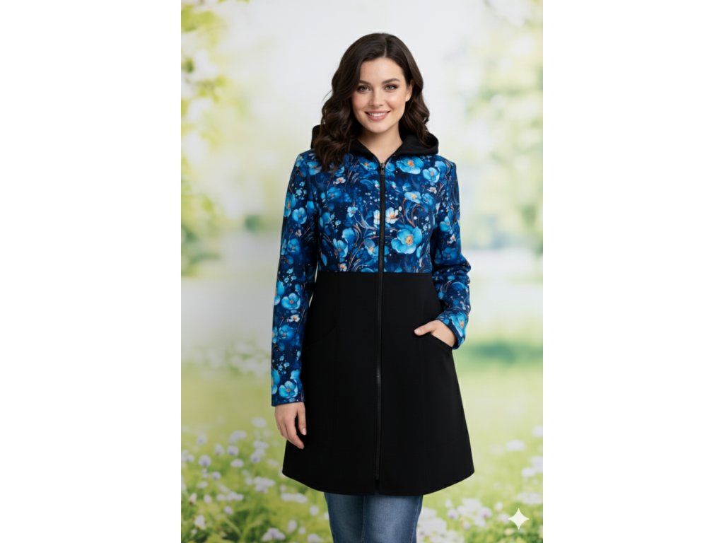 Tento orignální model kombinuje černý softshell s půvabným motivem modrého kvítí.