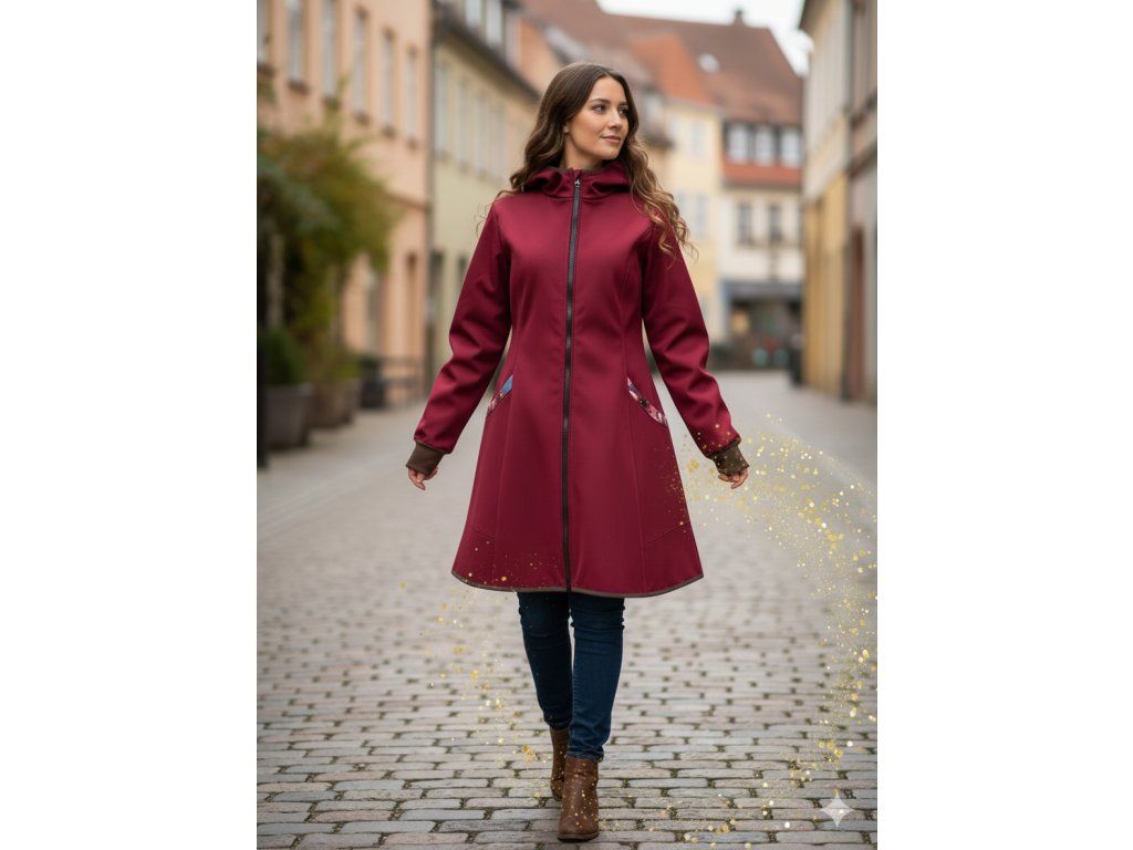 Softshellový kabát vínový s prodlouženým zadním dílem